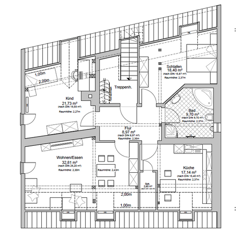 Wenig Raumverlust der Dachschrägen durch hohen Drempel